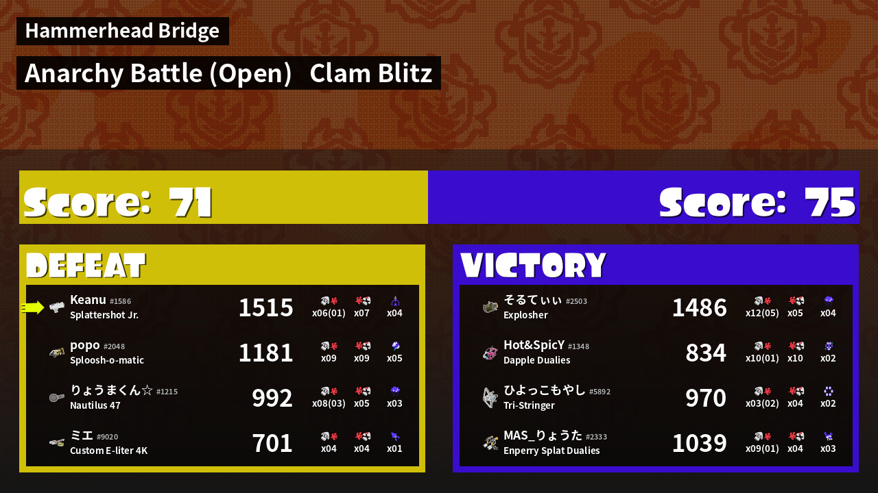 | Mode | Clam Blitz - Anarchy Battle (Open) | ||
