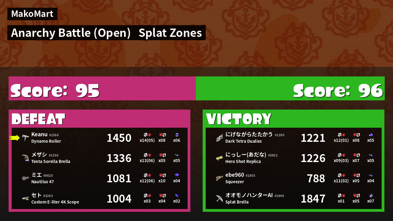 | Mode | Splat Zones - Anarchy Battle (Open) | ||