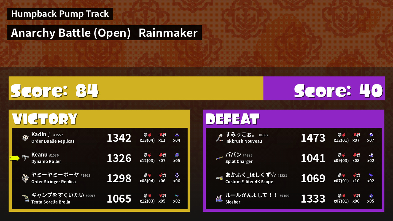 | Mode | Rainmaker - Anarchy Battle (Open) | ||