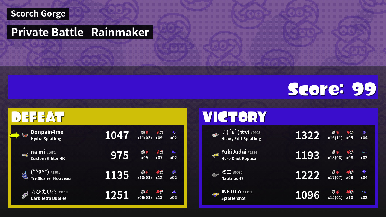 | Medals | #1 Overall Splatter #1 Popular Target #1 Splat Assister | ||