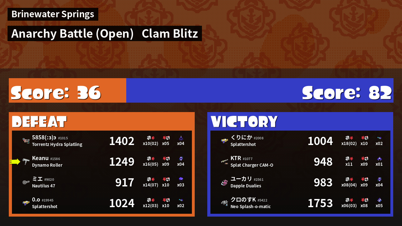 | Mode | Clam Blitz - Anarchy Battle (Open) | ||
