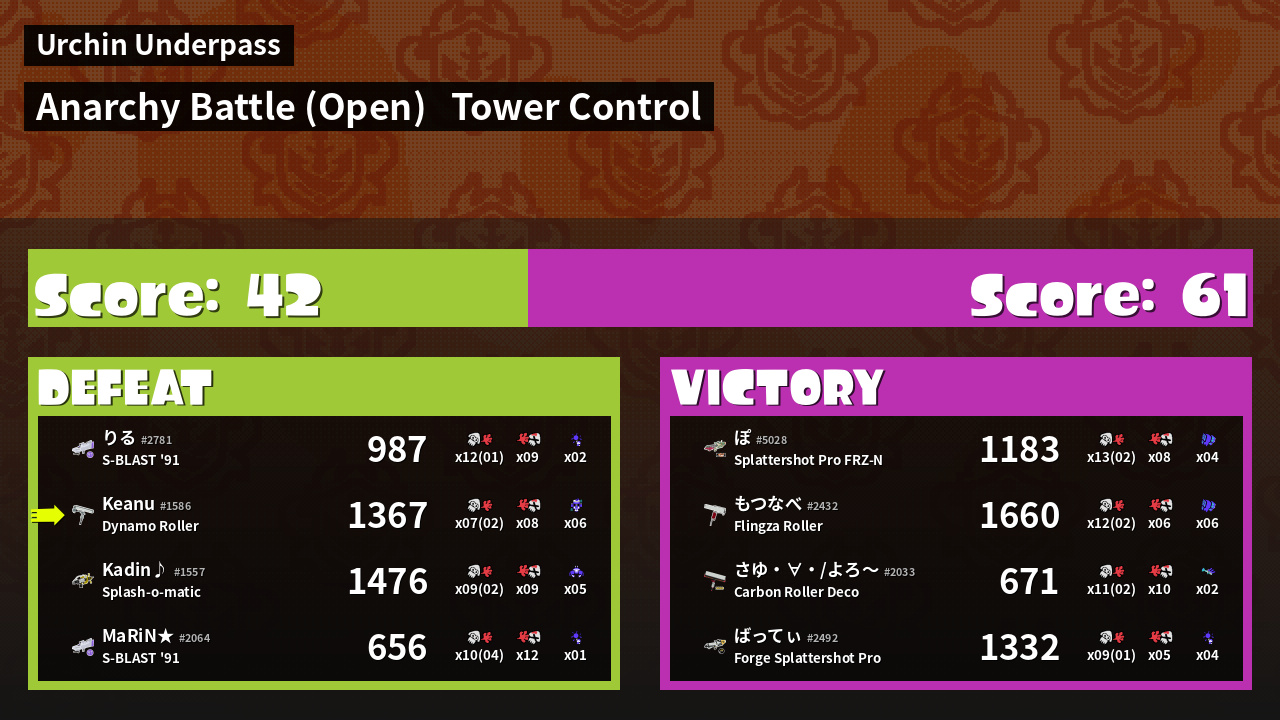 | Mode | Tower Control - Anarchy Battle (Open) | ||