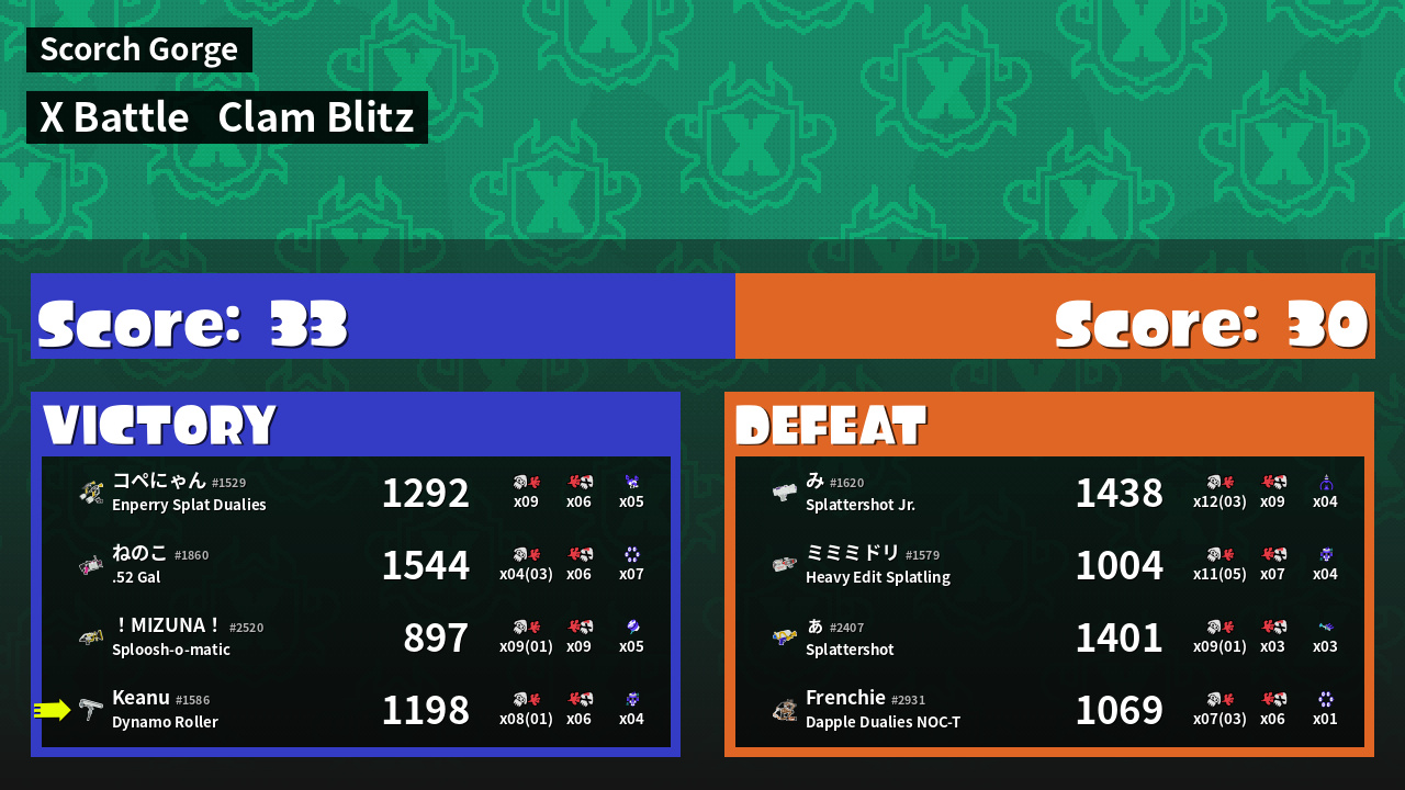 | Mode | Clam Blitz - X Battle | ||