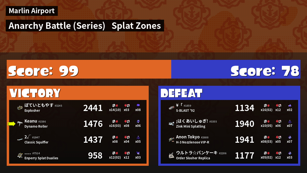 | Mode | Splat Zones - Anarchy Battle (Series) | ||