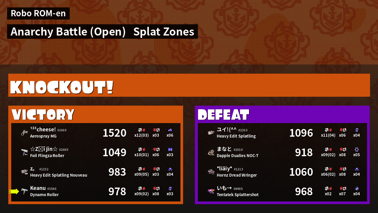 | Mode | Splat Zones - Anarchy Battle (Open) | ||