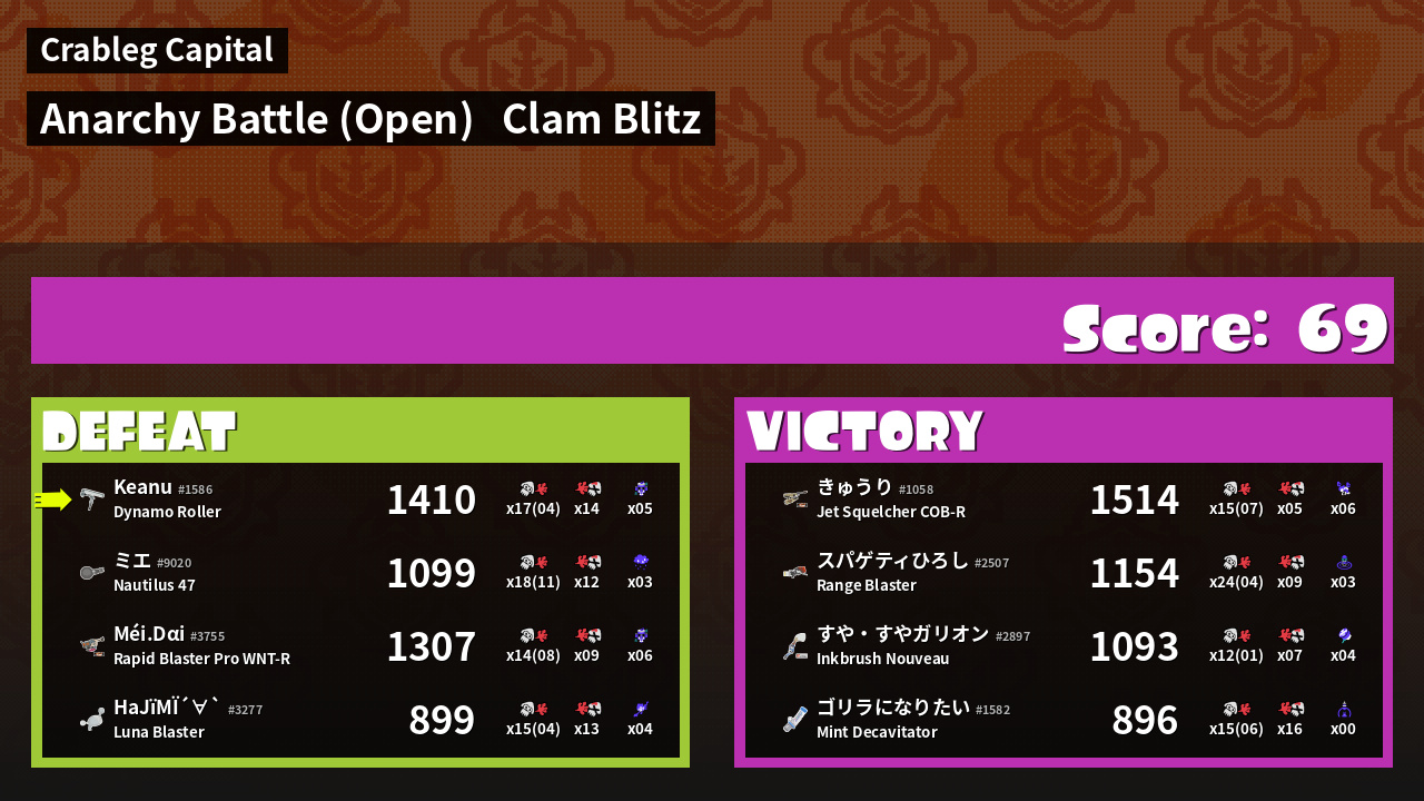 | Mode | Clam Blitz - Anarchy Battle (Open) | ||