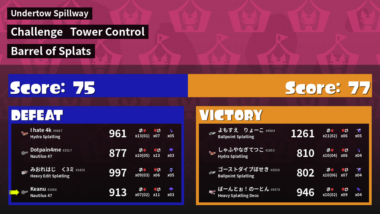 | Challenge | Barrel of Splats Muster as much firepower as you can<br />in this battle of the splatlings! | ||