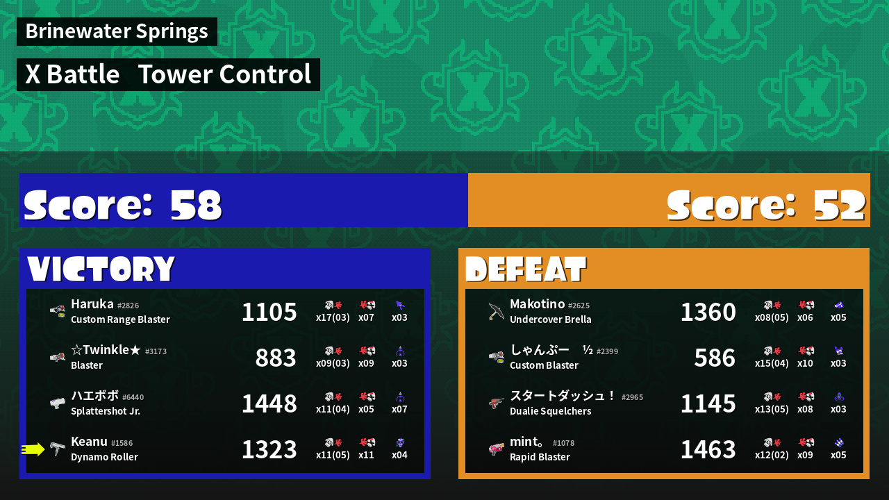| Medals | #1 Splat Assister #1 Checkpoint Breaker #1 Tacticooler User | ||