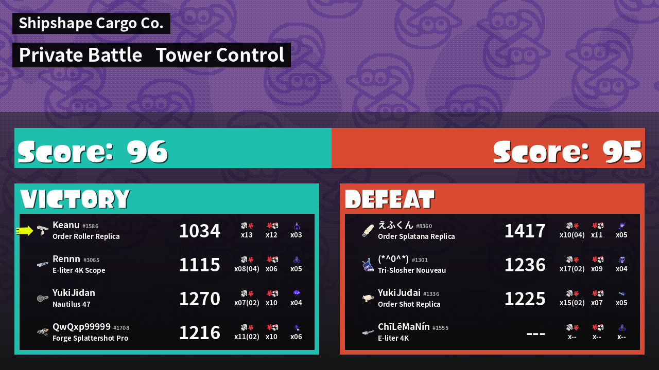 | Mode | Tower Control - Private Battle | ||