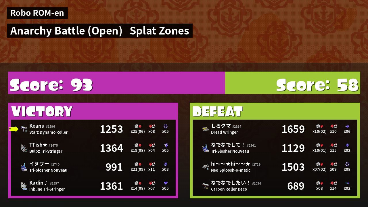 | Mode | Splat Zones - Anarchy Battle (Open) | ||