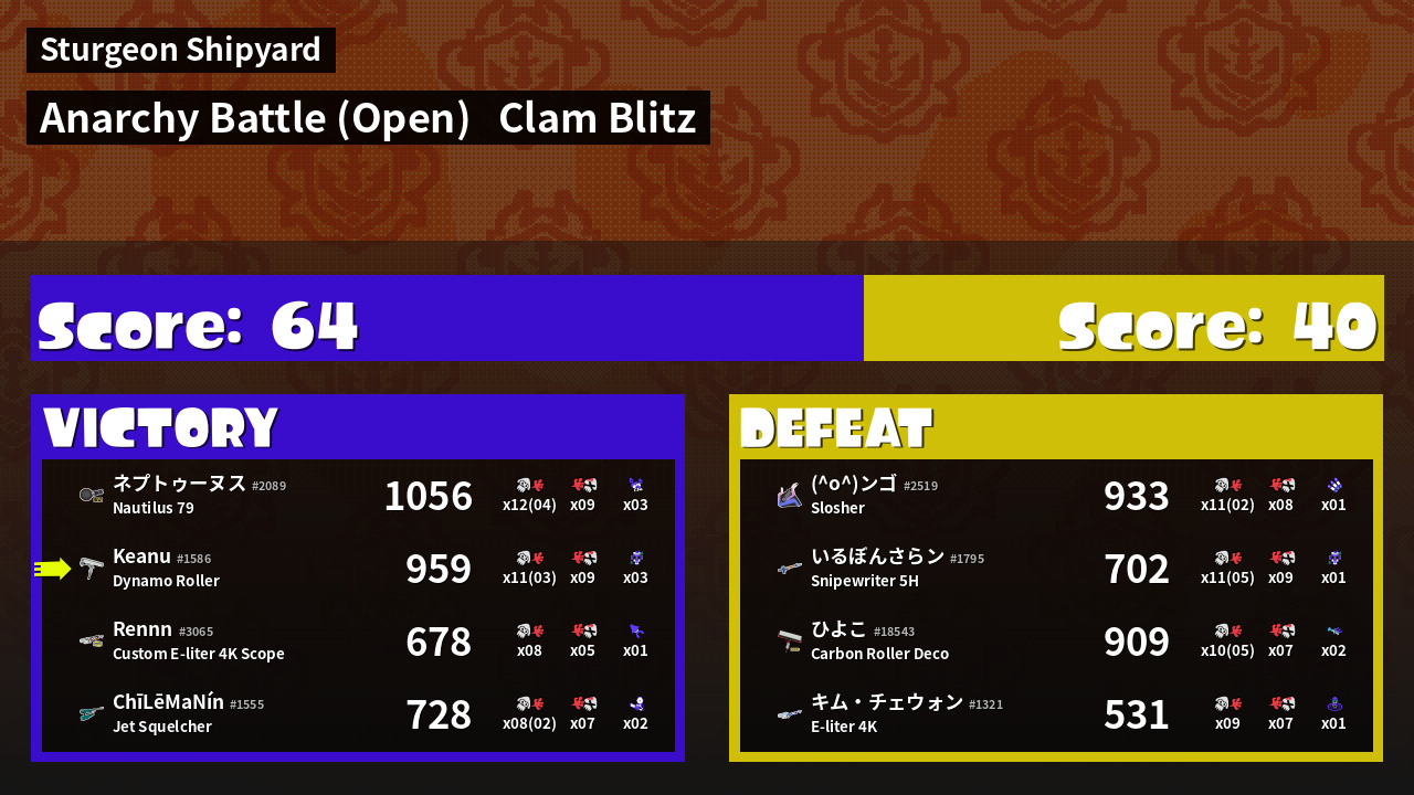 | Mode | Clam Blitz - Anarchy Battle (Open) | ||