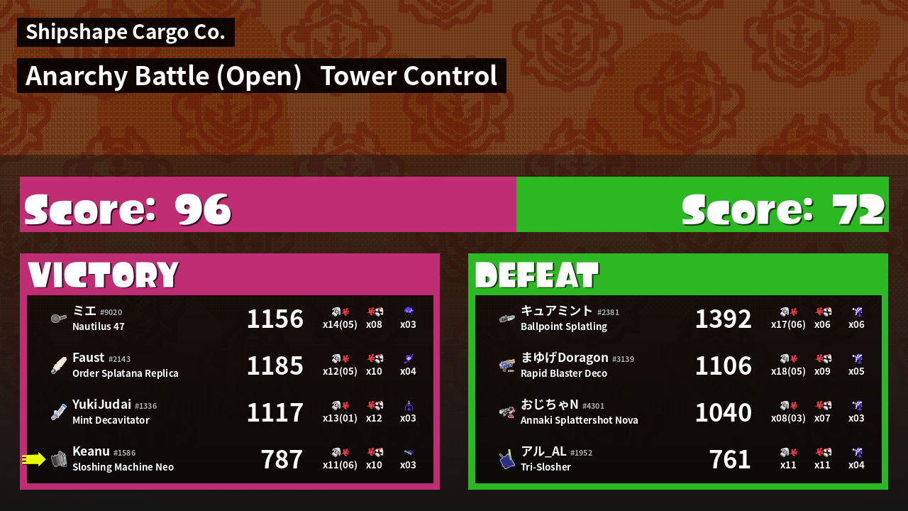 | Mode | Tower Control - Anarchy Battle (Open) | ||