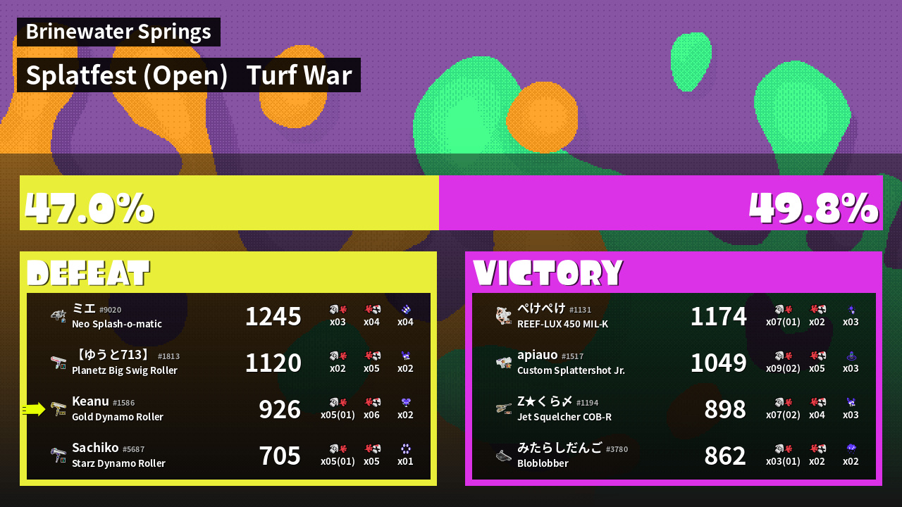 | Medals | #1 Overall Splatter #1 Enemy-Base Inker #1 Enemy Splatter | ||