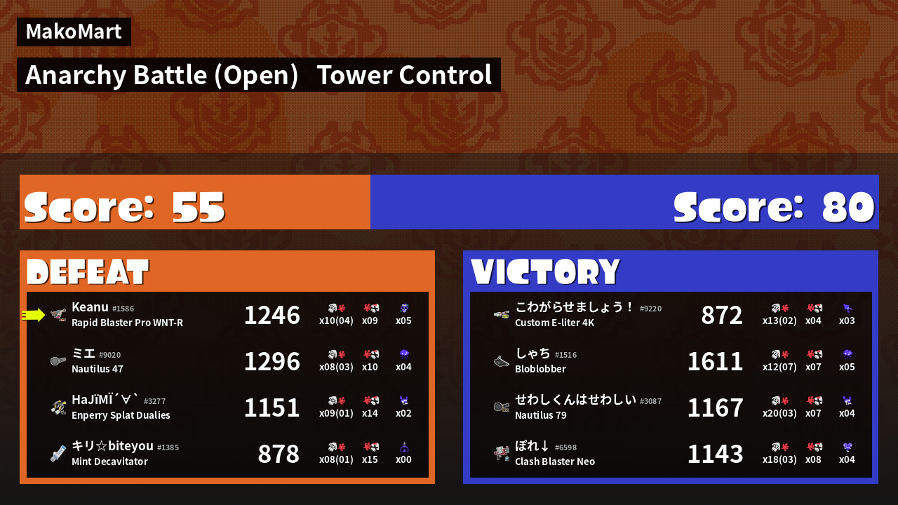 | Mode | Tower Control - Anarchy Battle (Open) | ||