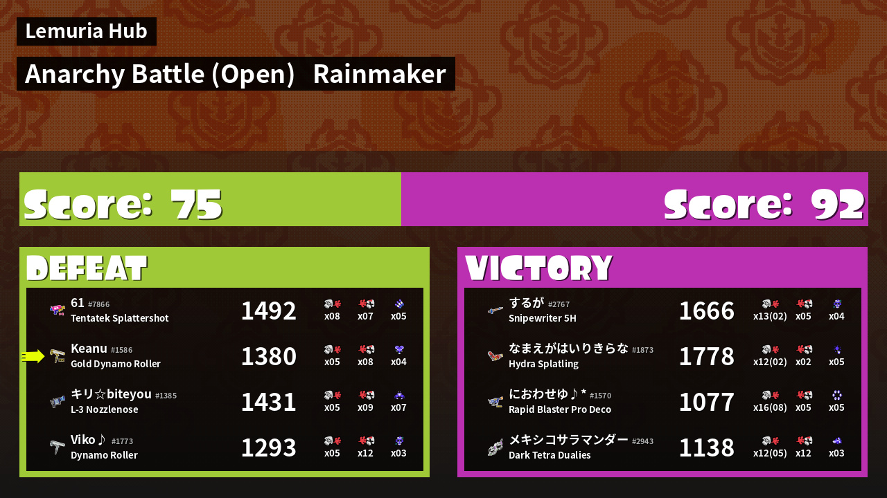 | Mode | Rainmaker - Anarchy Battle (Open) | ||
