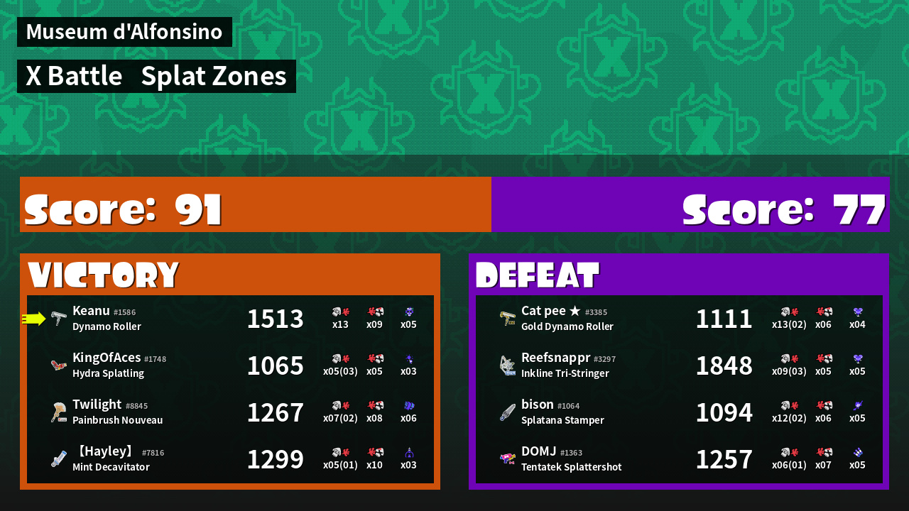 | Mode | Splat Zones - X Battle | ||