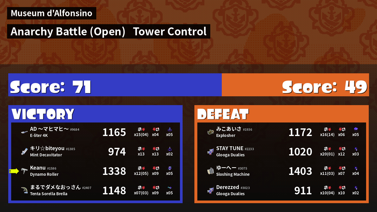 | Mode | Tower Control - Anarchy Battle (Open) | ||