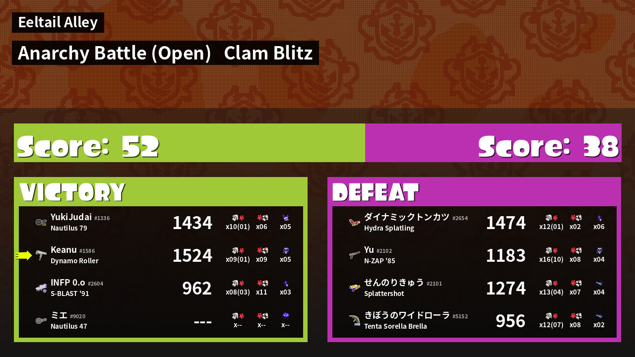 | Mode | Clam Blitz - Anarchy Battle (Open) | ||