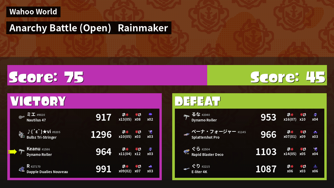 | Mode | Rainmaker - Anarchy Battle (Open) | ||