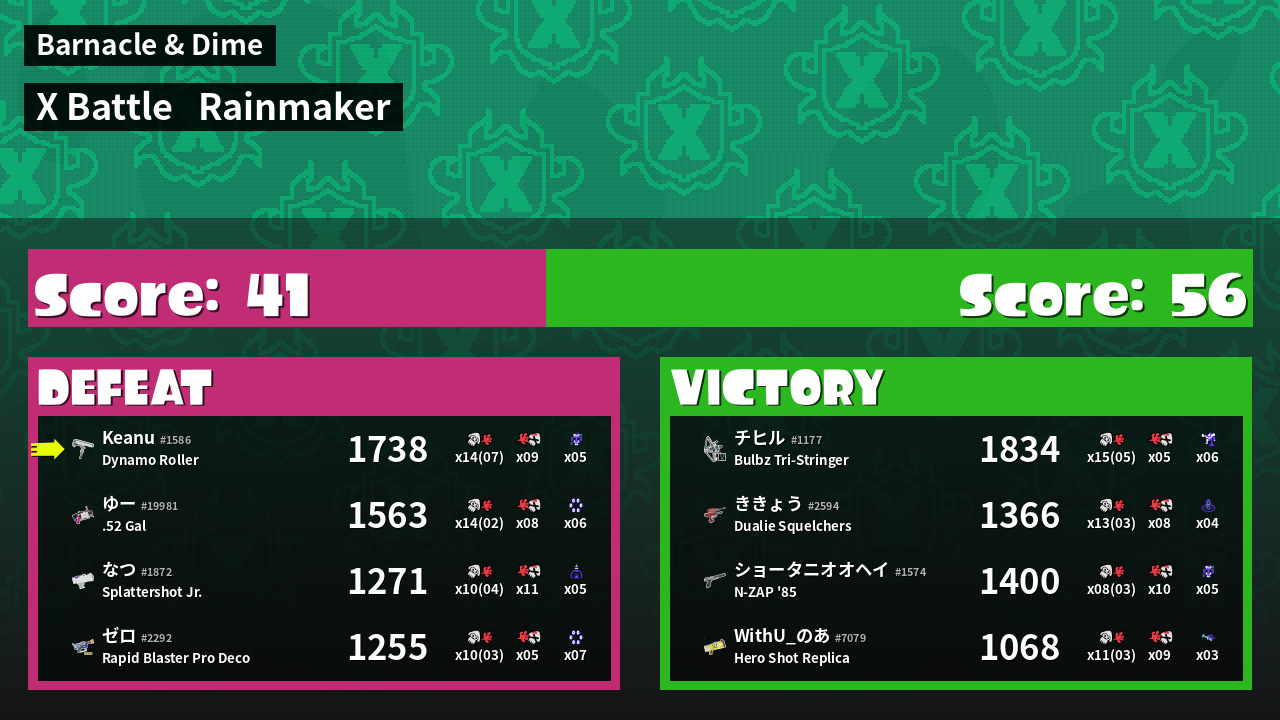 | Weapon | Dynamo Roller ( Sprinkler / Tacticooler) | ||