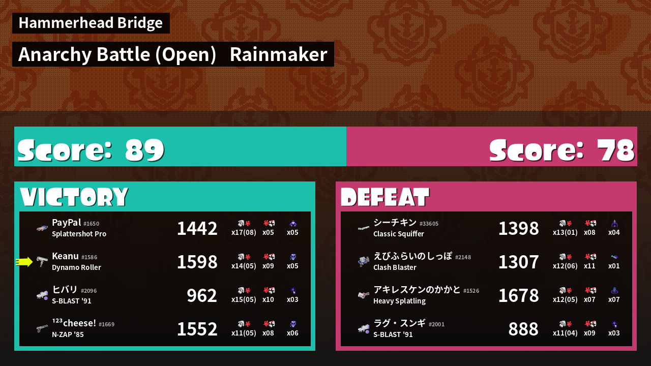 | Mode | Rainmaker - Anarchy Battle (Open) | ||