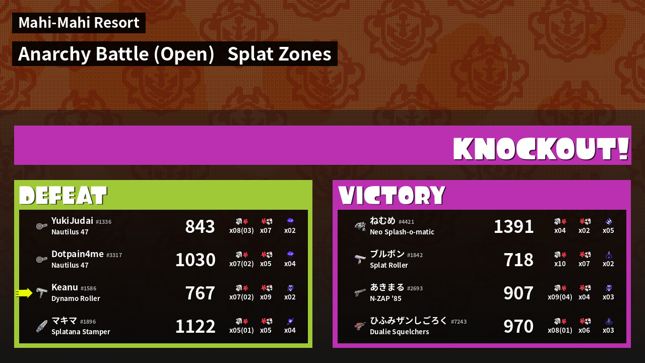 | Mode | Splat Zones - Anarchy Battle (Open) | ||