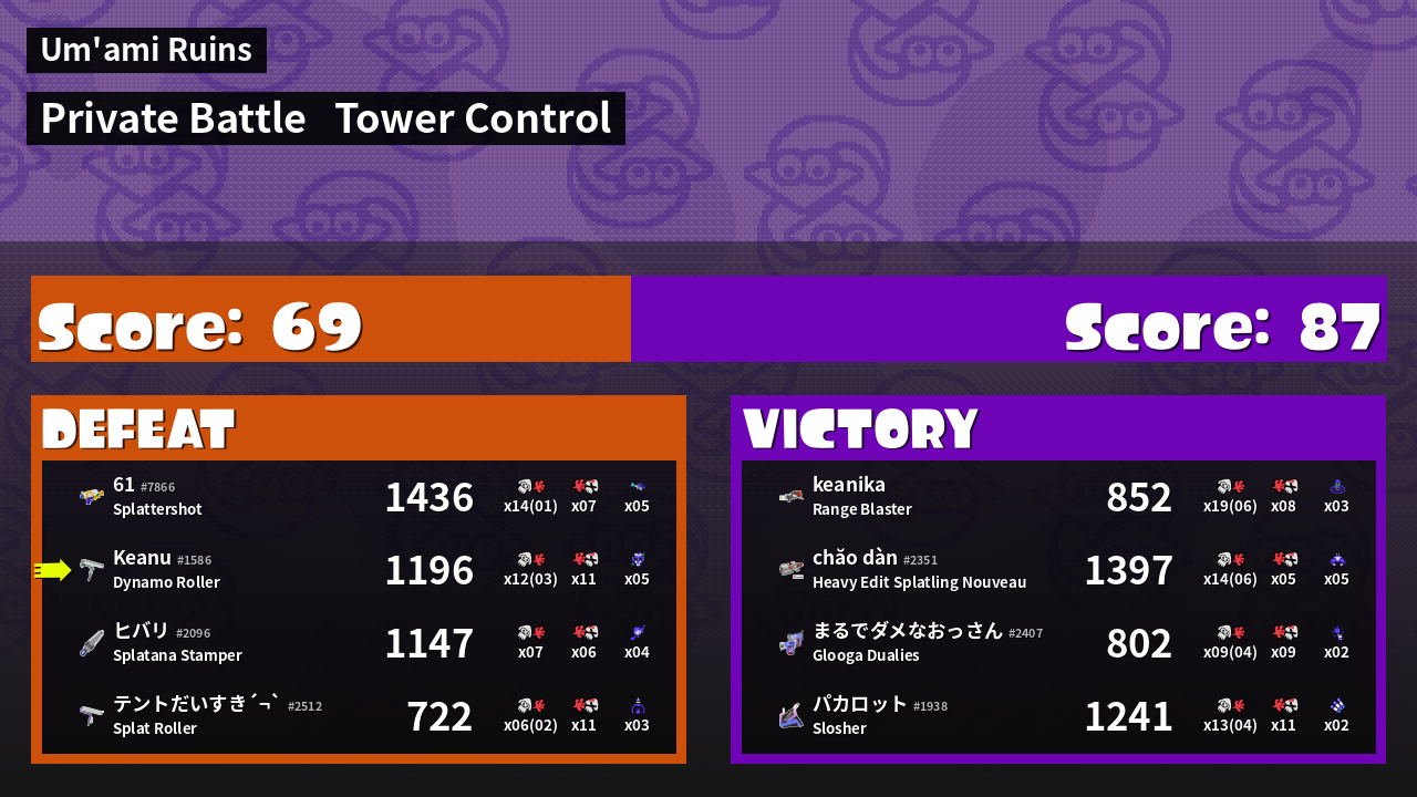| Weapon | Dynamo Roller ( Sprinkler / Tacticooler) | ||