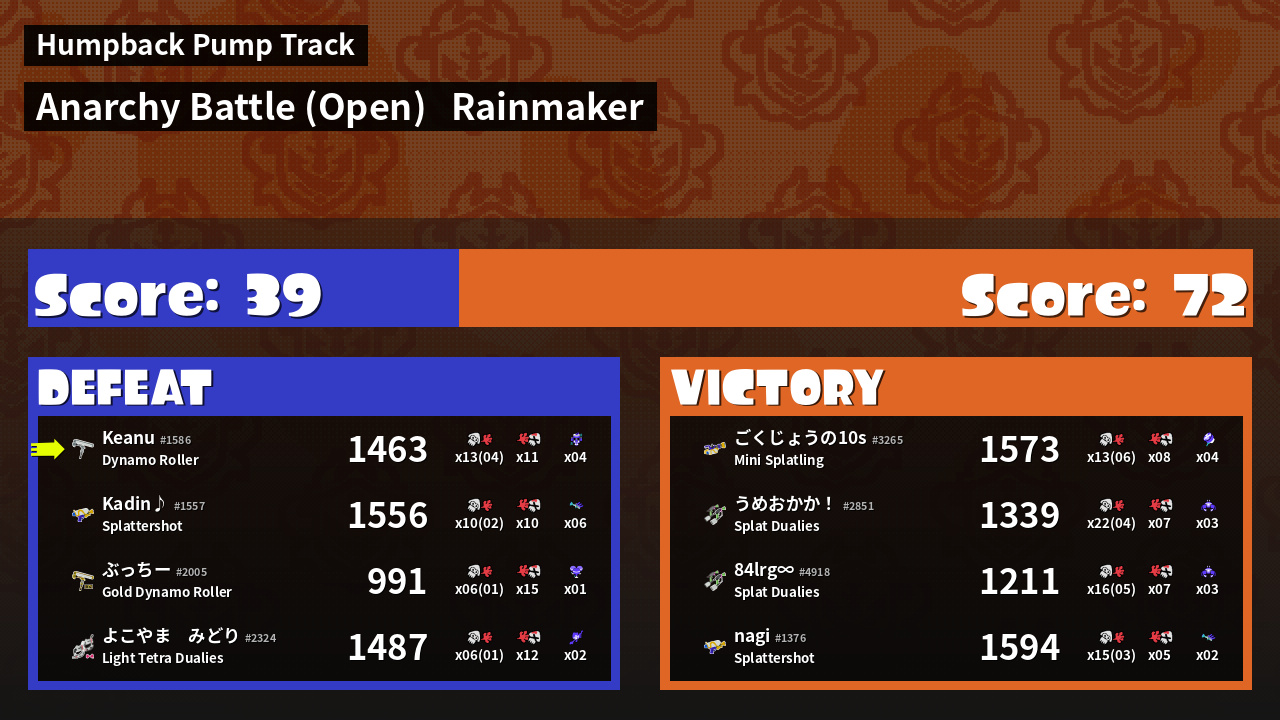 | Mode | Rainmaker - Anarchy Battle (Open) | ||