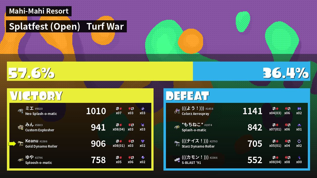 | Medals | #1 Overall Splatter #1 Enemy-Base Inker #1 Enemy Splatter | ||
