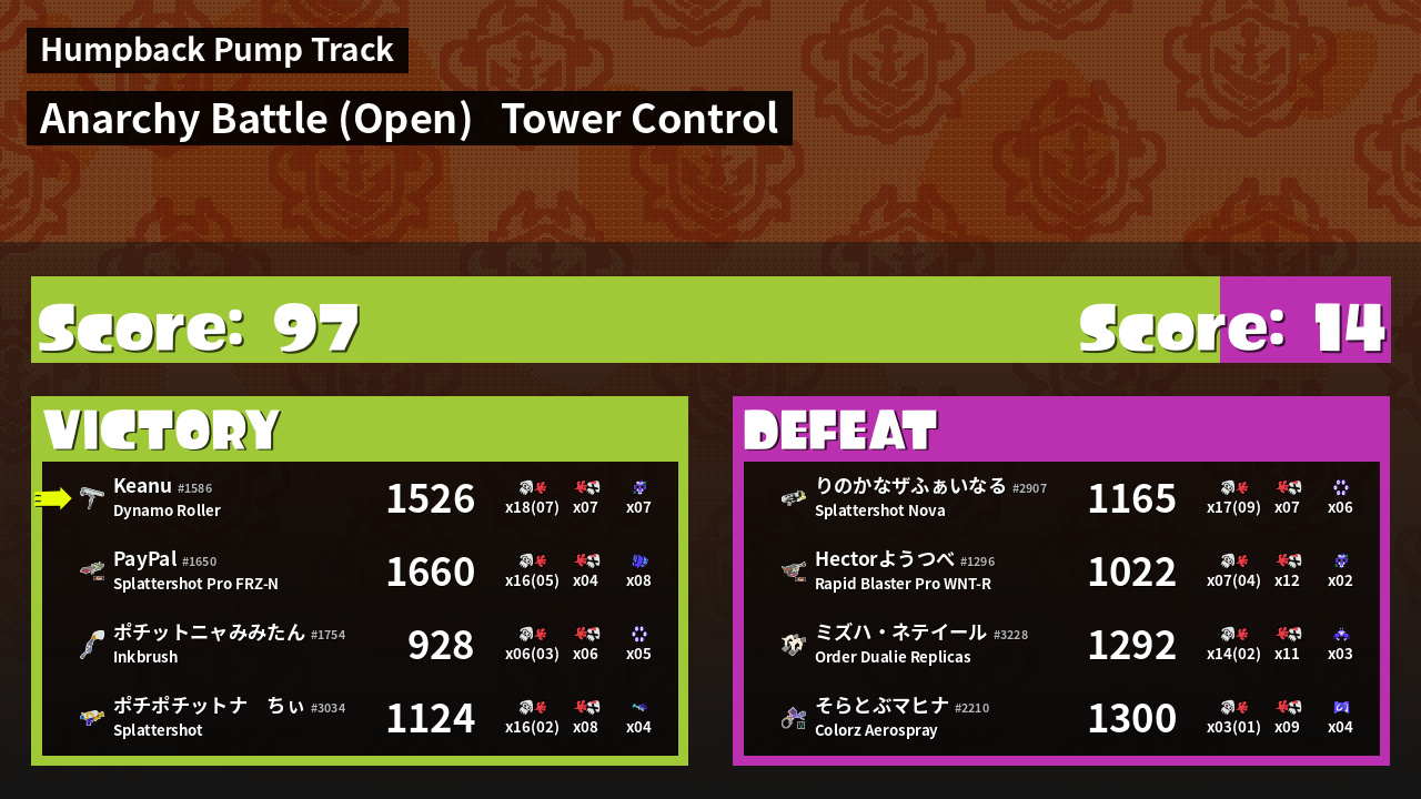 | Mode | Tower Control - Anarchy Battle (Open) | ||