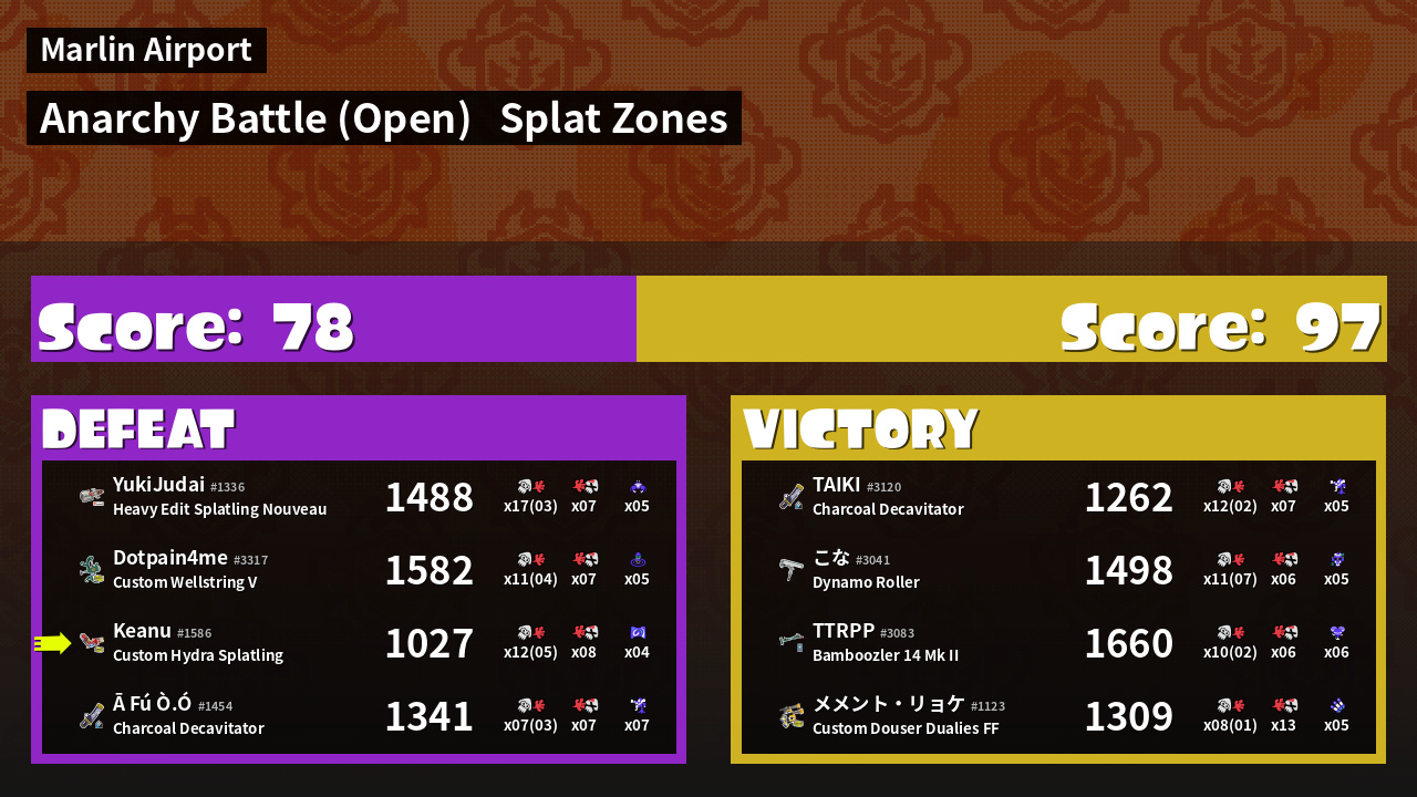 | Mode | Splat Zones - Anarchy Battle (Open) | ||