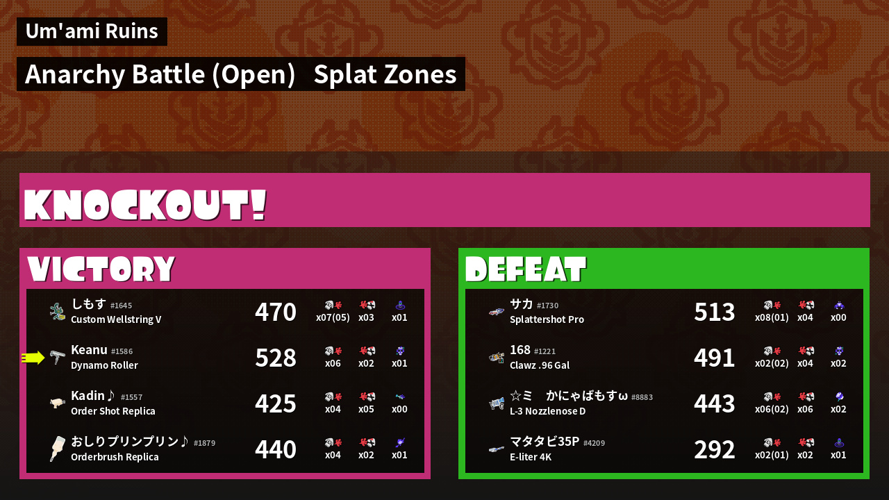 | Mode | Splat Zones - Anarchy Battle (Open) | ||