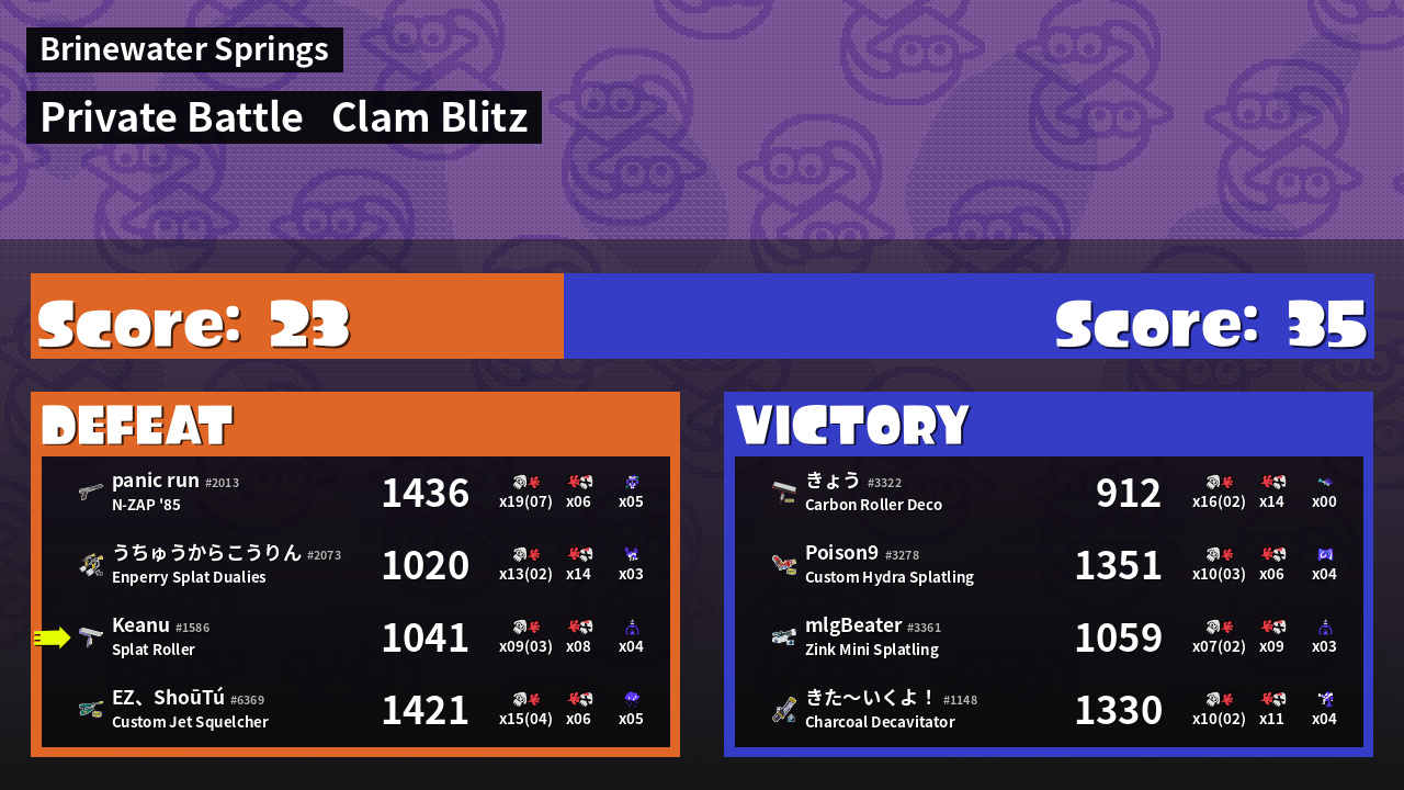 | Mode | Clam Blitz - Private Battle | ||