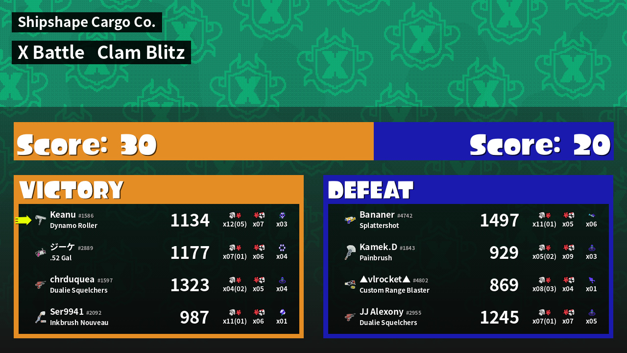 | Medals | #1 Overall Splatter #1 Score Booster #1 Clam Carrier | ||