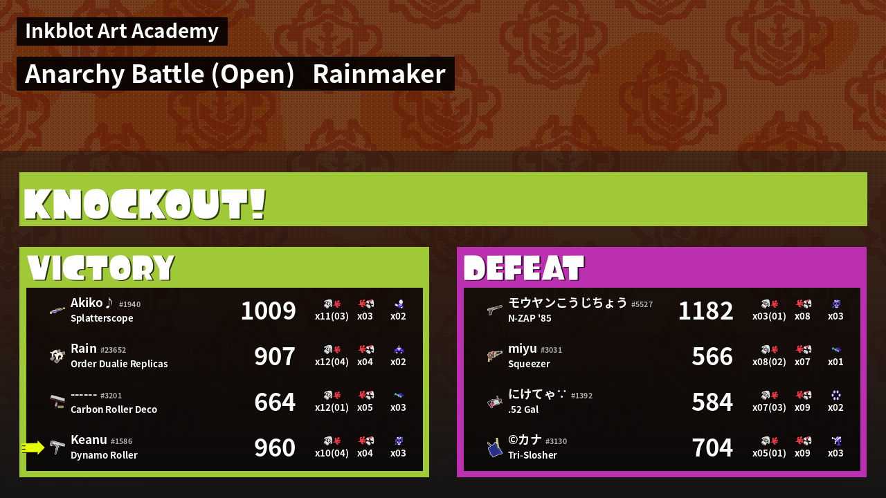 | Mode | Rainmaker - Anarchy Battle (Open) | ||