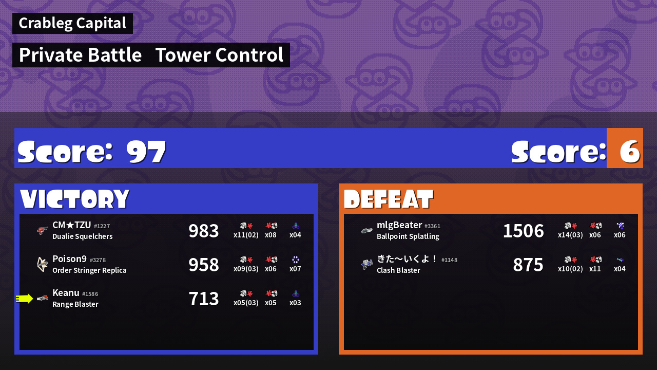 | Medals | #1 Super Jump Spot #1 Splat Assister #1 Ink Consumer | ||