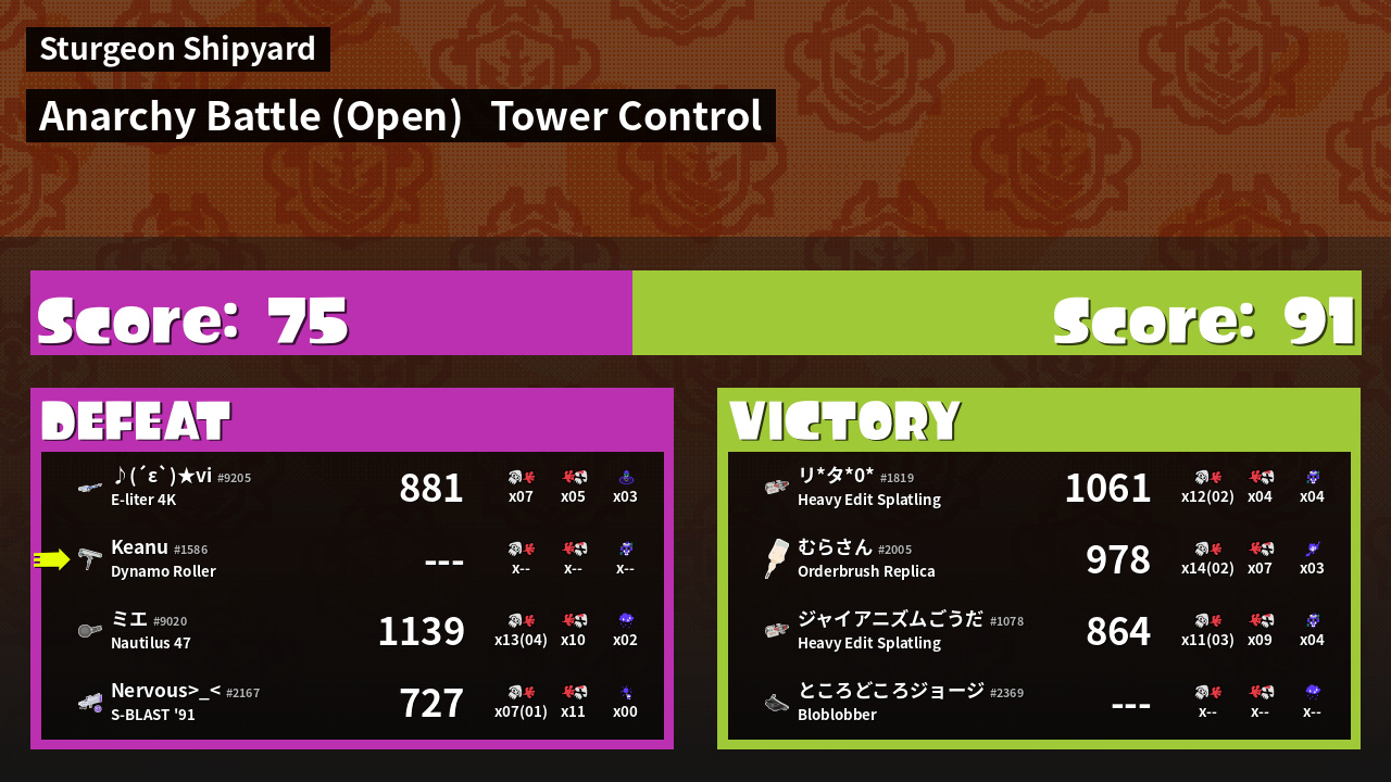 | Mode | Tower Control - Anarchy Battle (Open) | ||