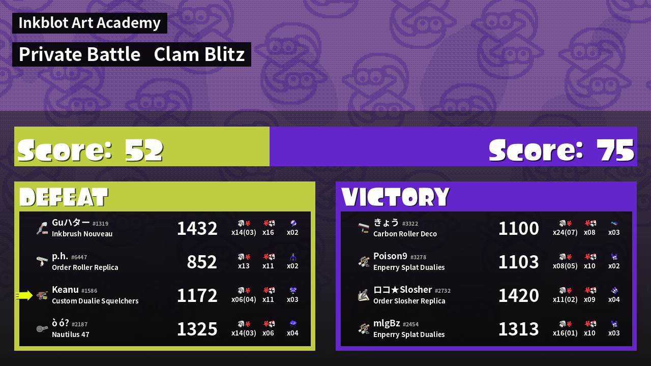 | Medals | #1 Super Jump Spot #1 Splat Assister #1 Clam Stopper | ||