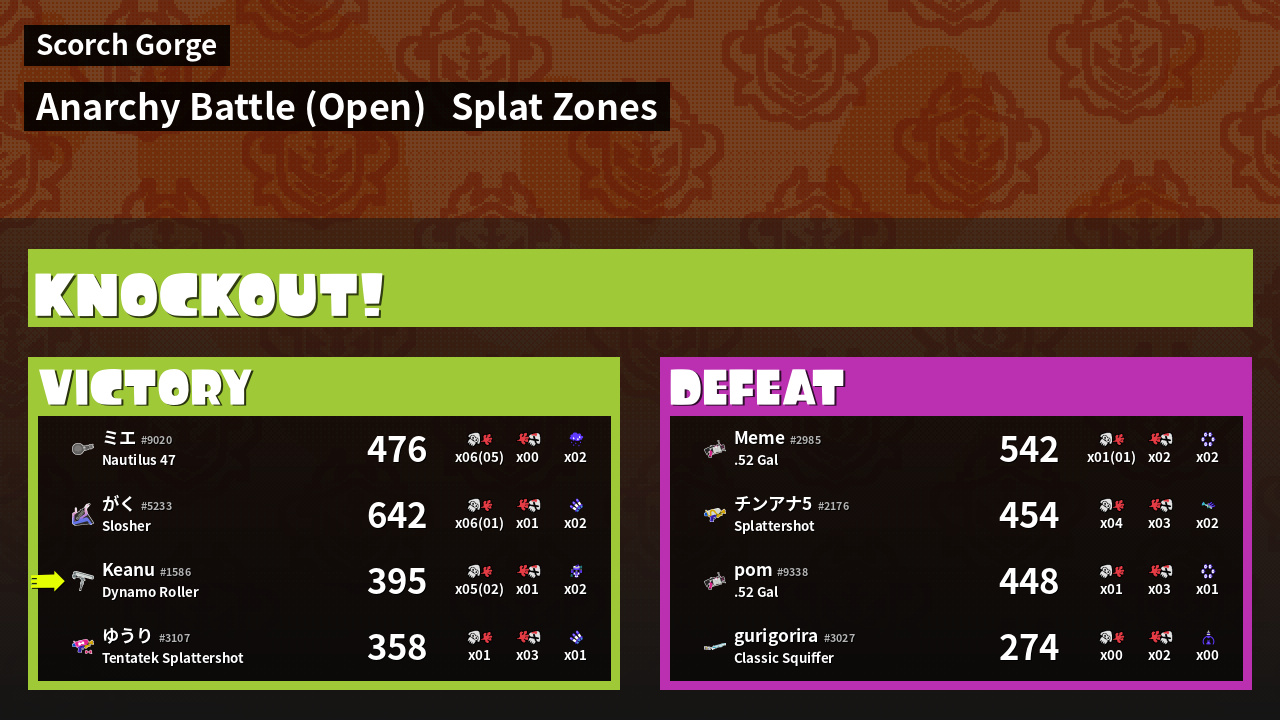 | Mode | Splat Zones - Anarchy Battle (Open) | ||