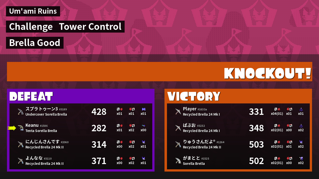 | Weapon | Tenta Sorella Brella ( Ink Mine / Trizooka) | ||