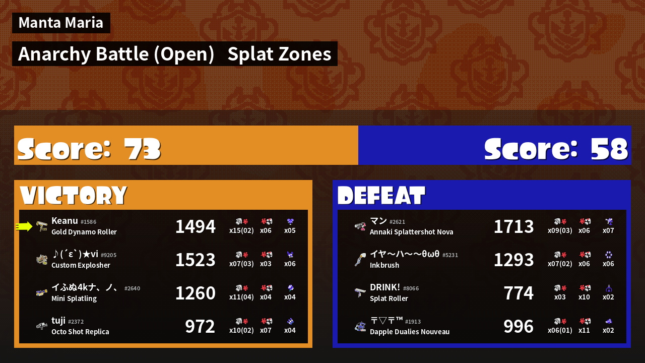 | Mode | Splat Zones - Anarchy Battle (Open) | ||