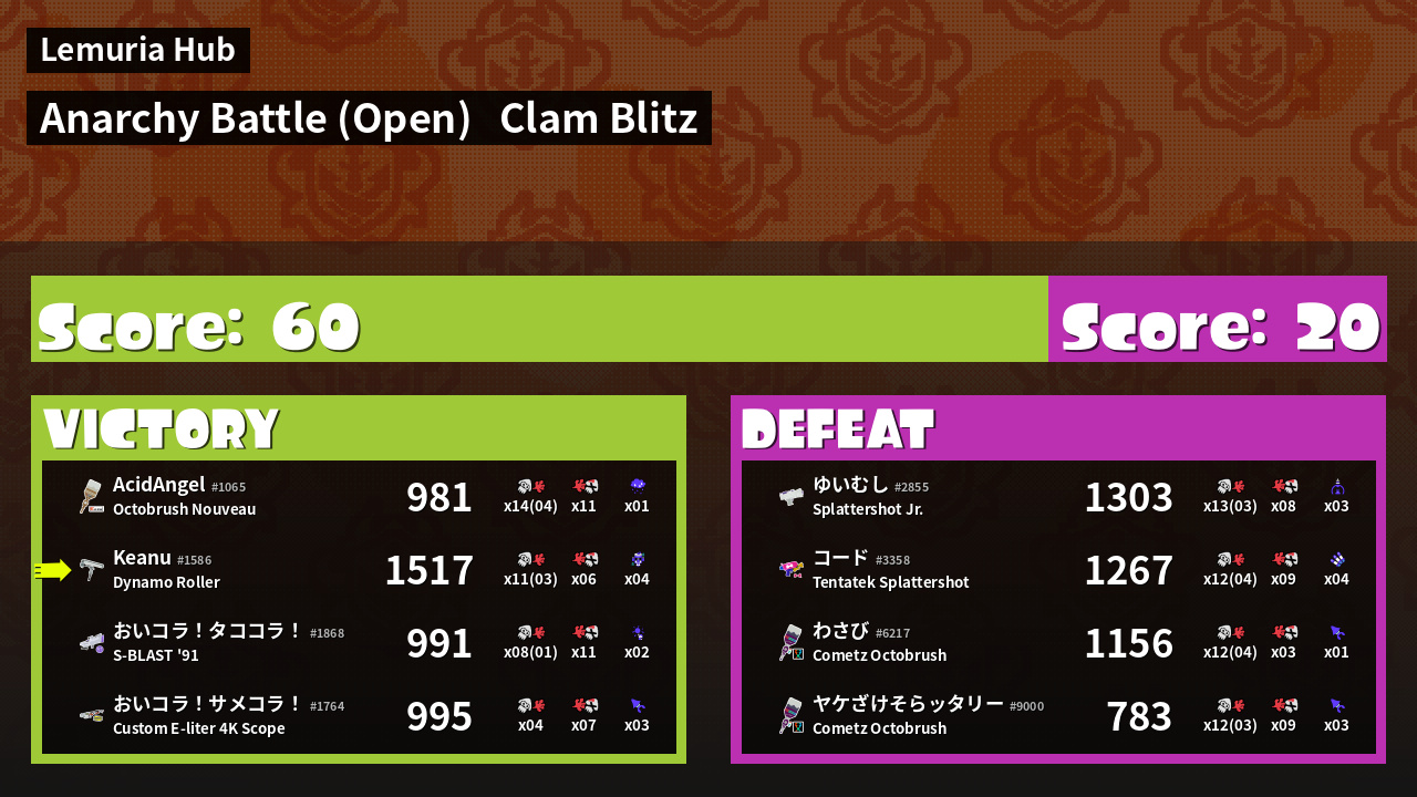 | Mode | Clam Blitz - Anarchy Battle (Open) | ||