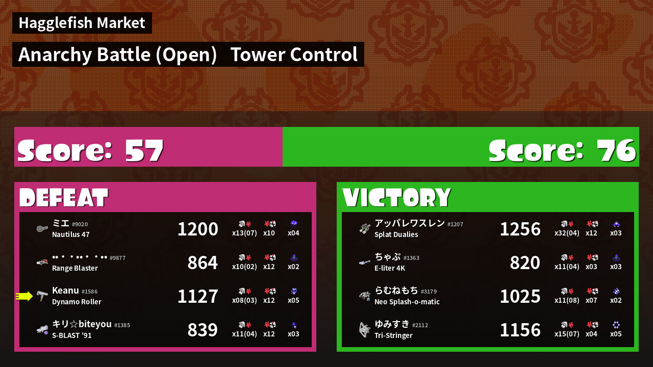 | Mode | Tower Control - Anarchy Battle (Open) | ||
