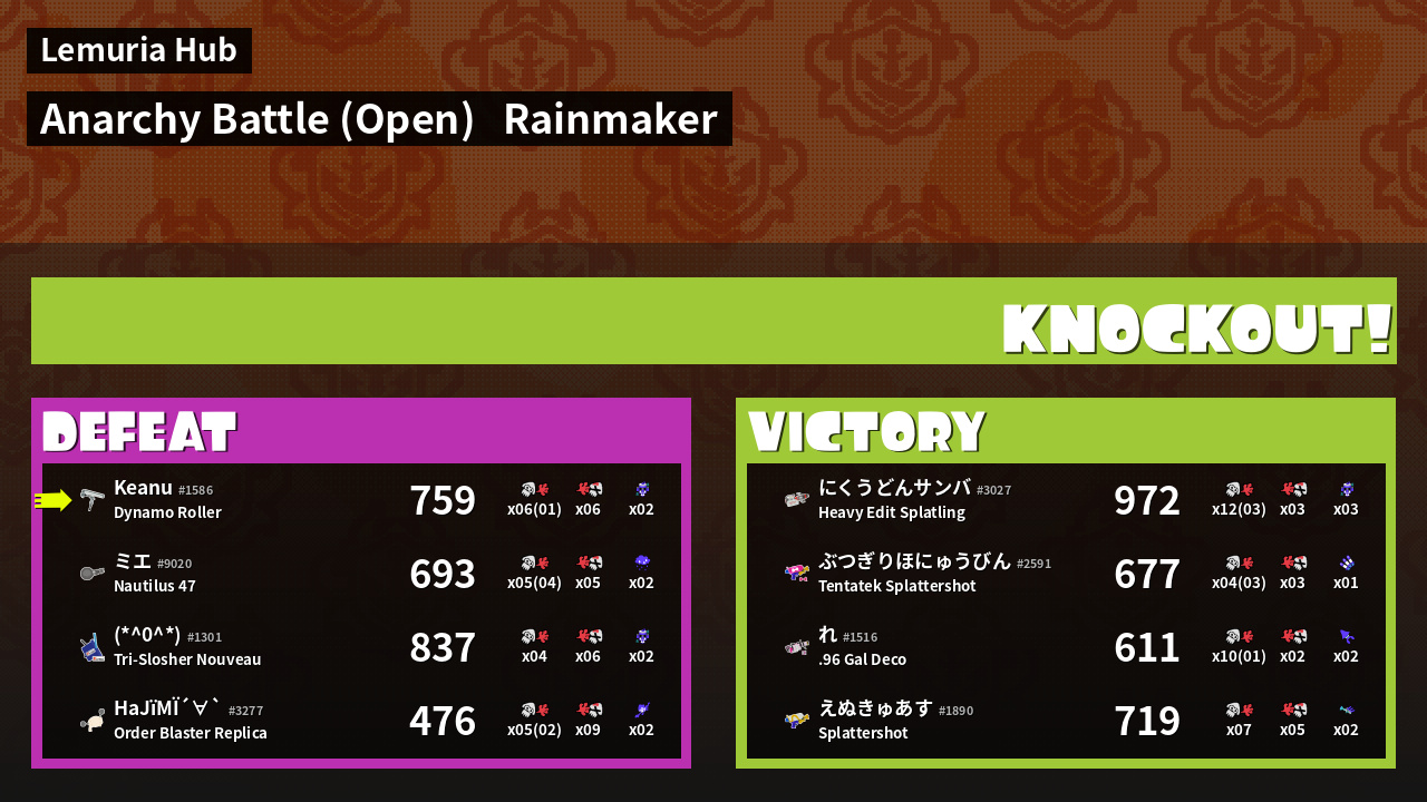 | Mode | Rainmaker - Anarchy Battle (Open) | ||