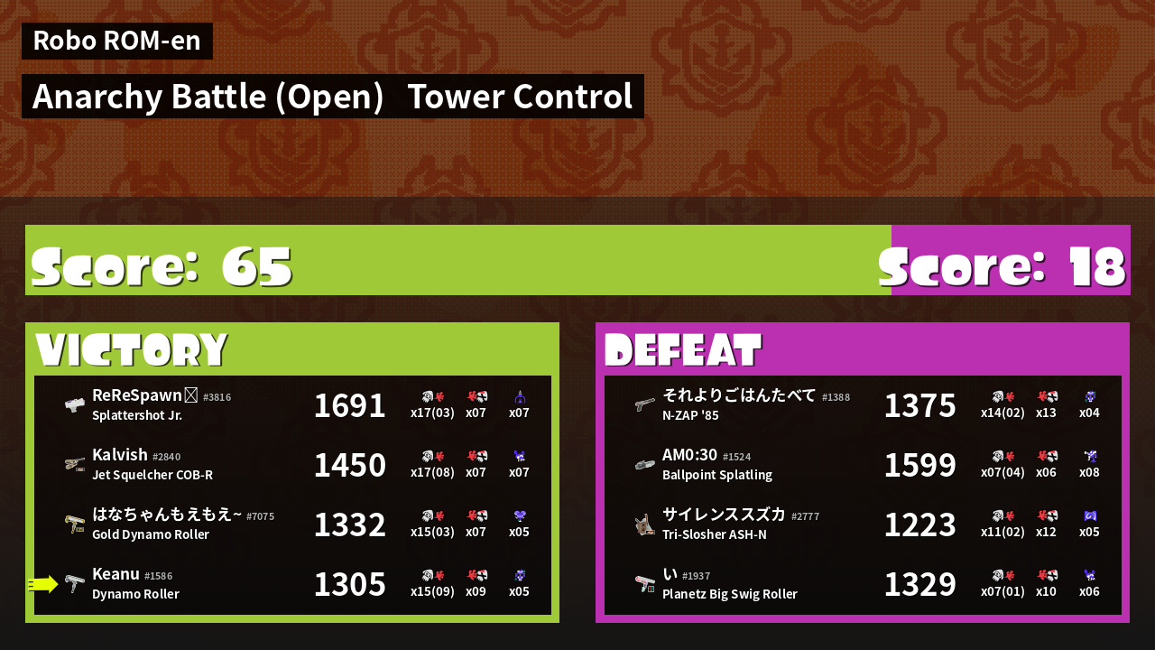 | Mode | Tower Control - Anarchy Battle (Open) | ||