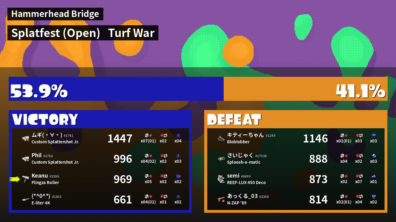 | Medals | #1 Tenta Missiles User #2 Overall Splatter #2 Popular Target | ||