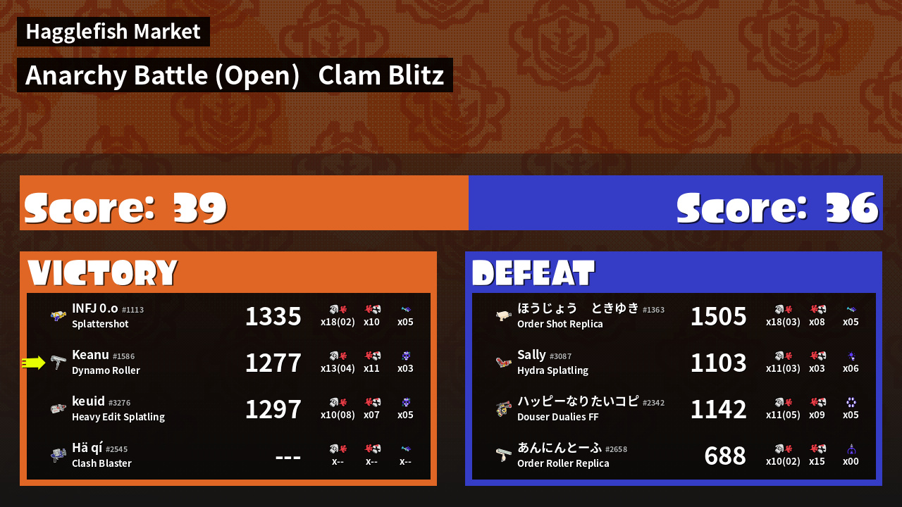 | Mode | Clam Blitz - Anarchy Battle (Open) | ||