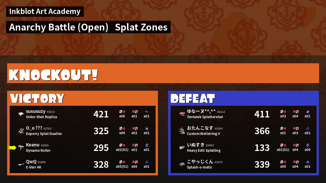 | Mode | Splat Zones - Anarchy Battle (Open) | ||