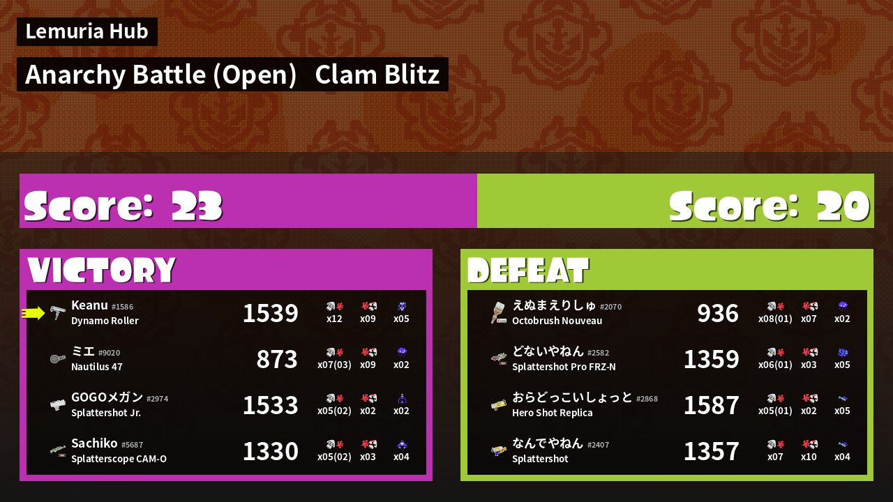 | Mode | Clam Blitz - Anarchy Battle (Open) | ||