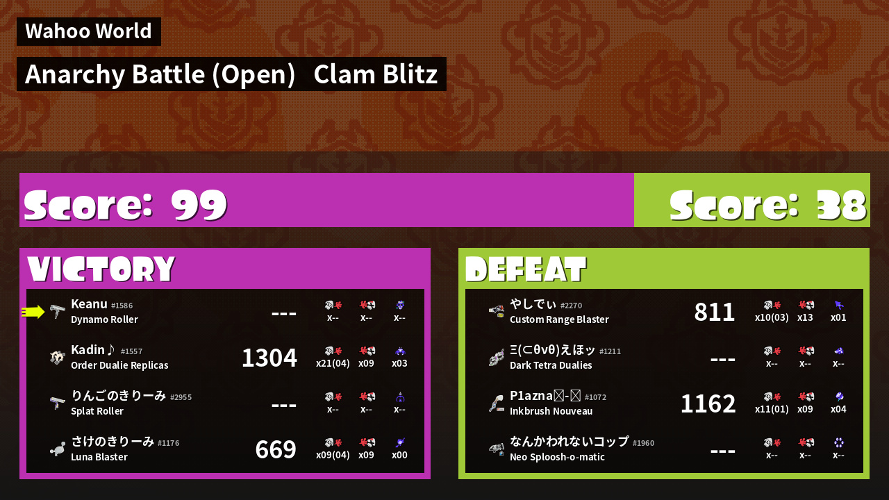| Mode | Clam Blitz - Anarchy Battle (Open) | ||